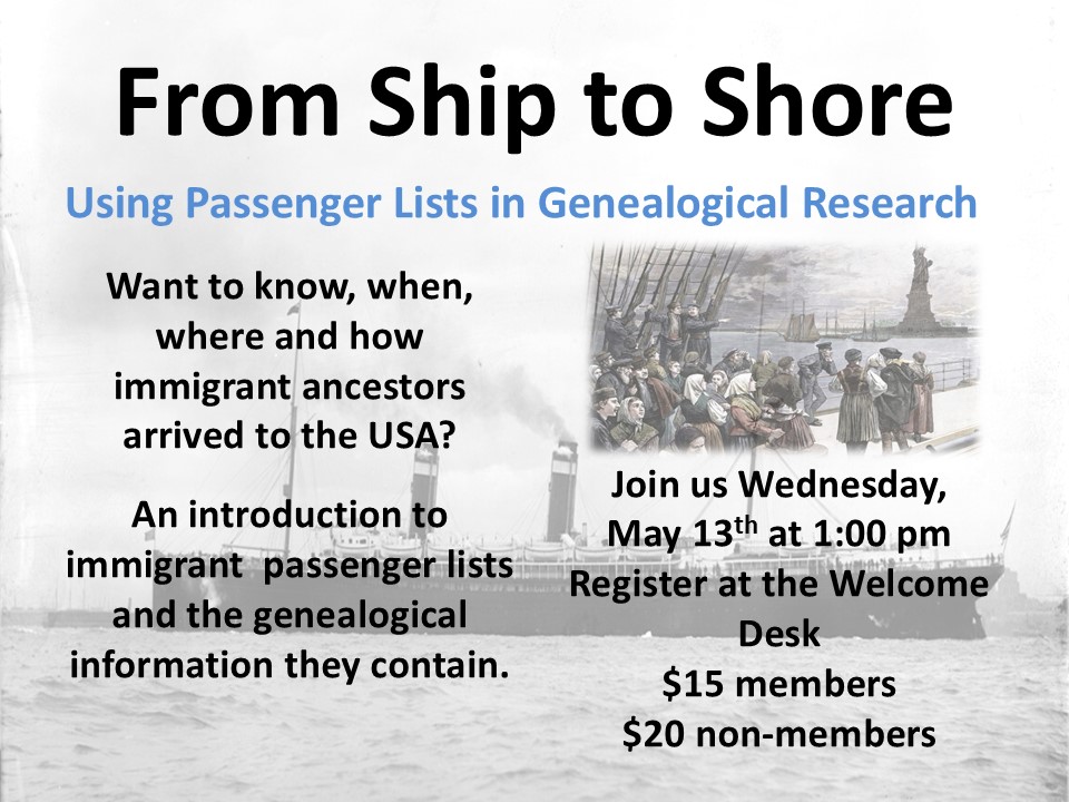 Designed for beginning and intermediate researchers, this class introduces passenger lists as a key resource for discovering where, when, and how immigrant ancestors arrived. You will learn where to find passenger lists and how to interpret them. Learn how to uncover new clues and move your family history research forward.